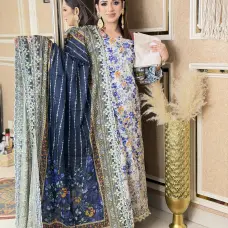 Bin Sayeed Inspired Premium Cotton 3 Piece (Blue Flower)