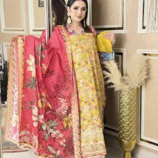 Bin Sayeed Inspired with All Over Embroidery & cutwork Orna. Premium Cotton Unstitched Three Piece.