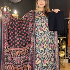 Premium Fine Cotton Three Piece (Kalamkari black)